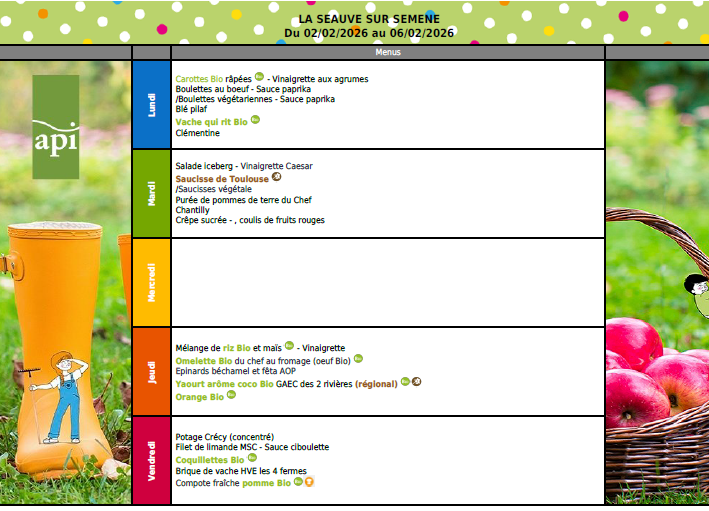 API MENU DE LA SEMAINE DU 26 AU 30 JANVIER 2026