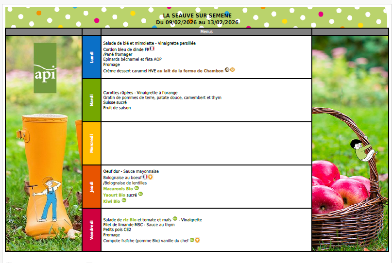 API MENU DE LA SEMAINE DU 02 AU 05 FEVRIER 2026